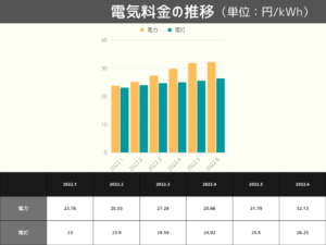 2022年に入ってから、電気料金の単価は値上がりし続けています。発電に必要な石炭や液化天然ガスの高騰に加えて、円安による物価上昇の影響を受け、今後も料金が上がることが予想されます。