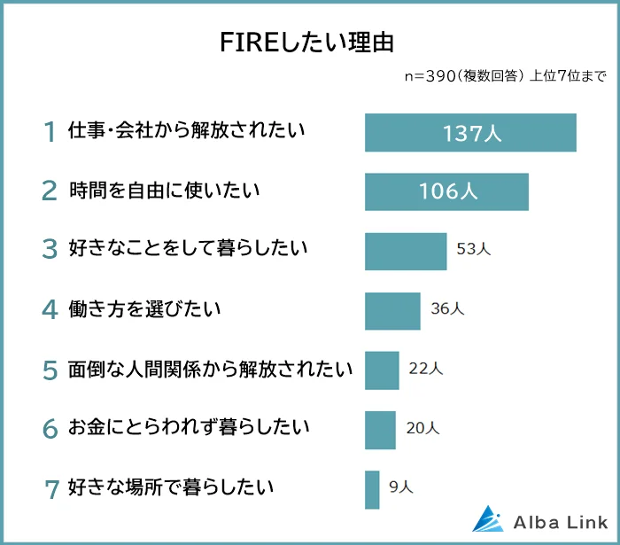 ・FIREしたい理由1位は「仕事・会社から解放されたい」