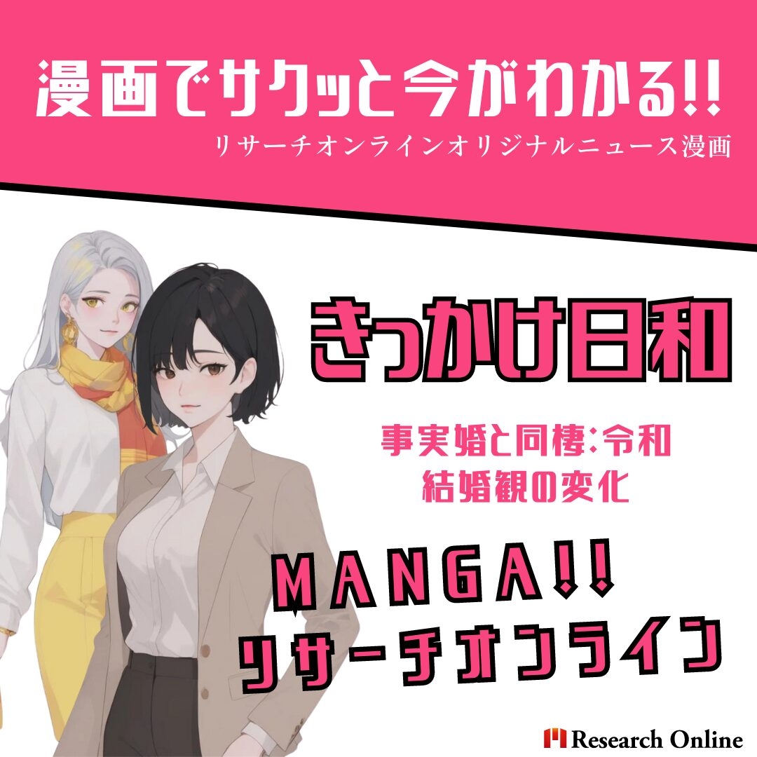 MANGA!リサーチオンライン 働く女性 漫画で学ぶ:「事実婚と同棲」30代女性向け結婚観の変化2024 2024年3月4日 12345678 本記事を読む http://research-online.jp/all/working-women/women-wealth-building/