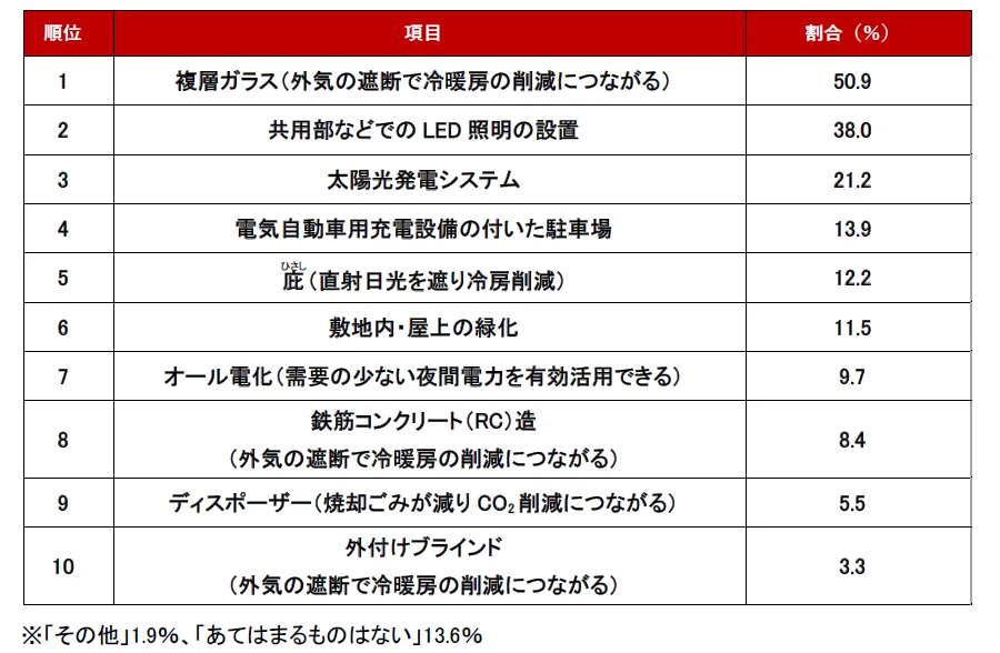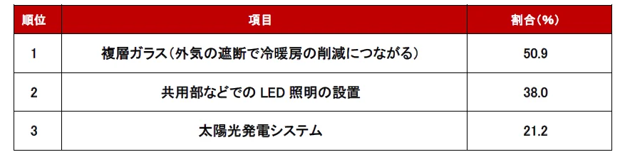 ■「環境に配慮した住まいにおすすめの条件・設備」ランキング