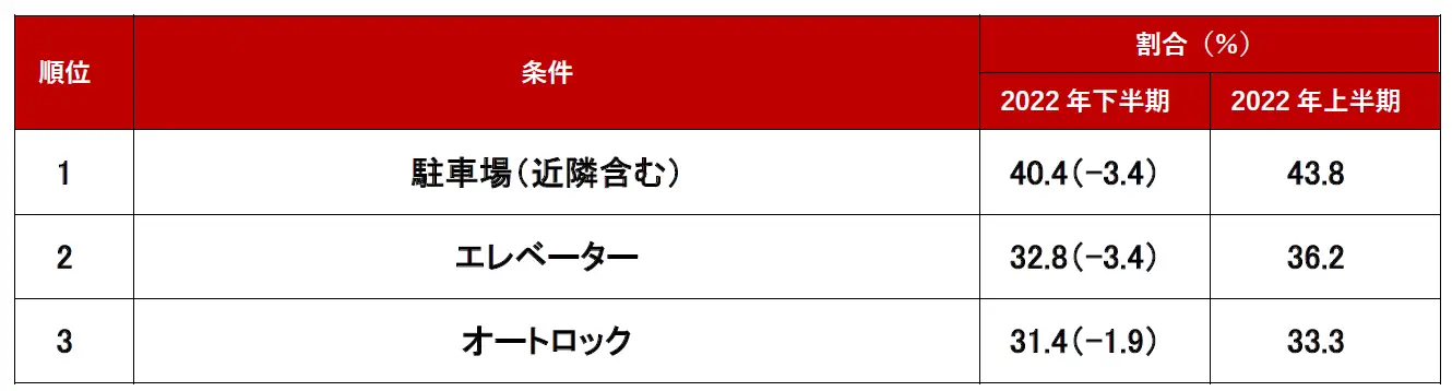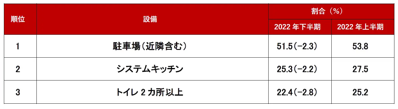 ~2022年上半期に続き、マンション編・一戸建て編ともに1位は「駐車場(近隣含む)」~