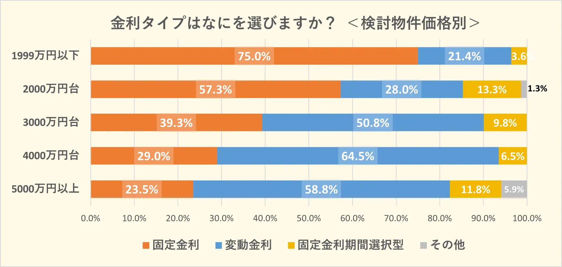 また、この「金利タイプの設問」について、回答者が検討している「物件の価格別」に分けると以下のような結果となりました。