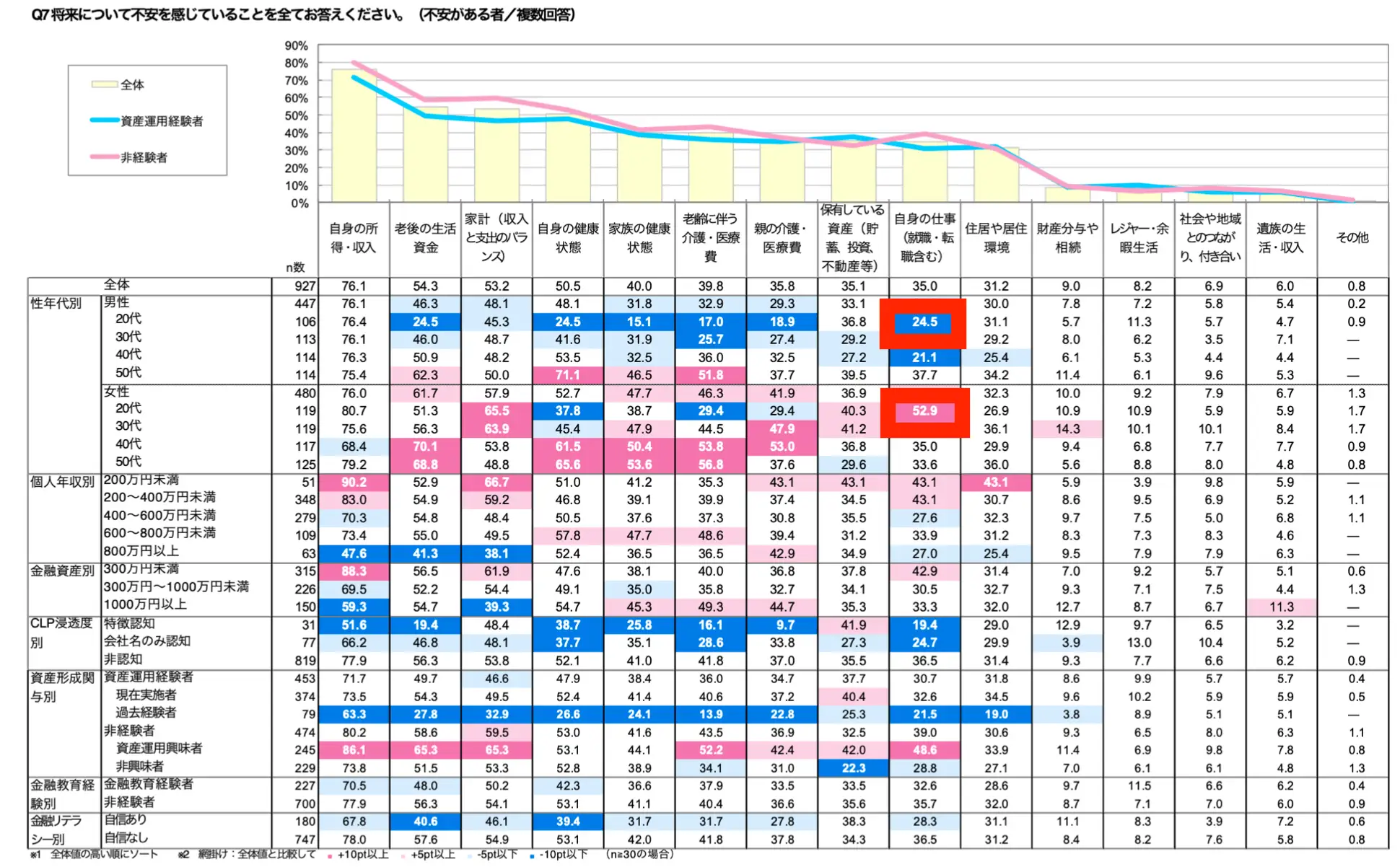 - 自身の仕事への不安が少ないほど、資産運用を楽しめている