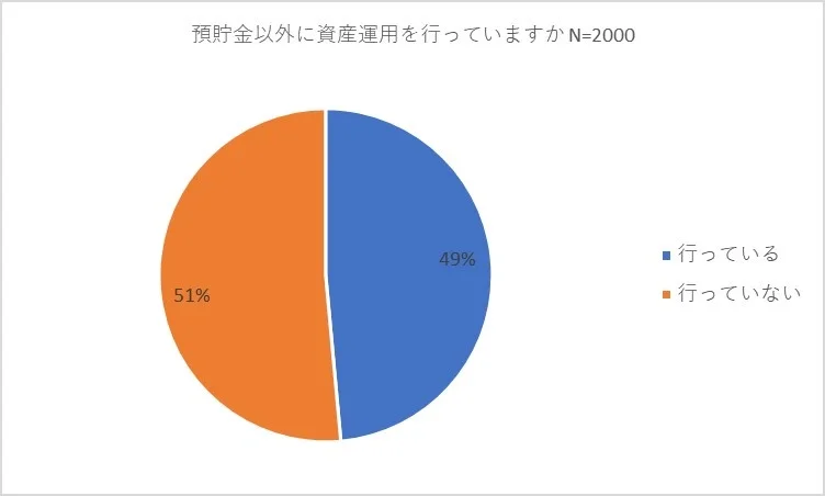 まず、全員に「預貯金以外に資産運用を行っていますか」と質問しました。「行っている」との回答が49パーセント、「行っていない」との回答が51パーセントとなり、ほぼ半数に分かれる結果となりました。