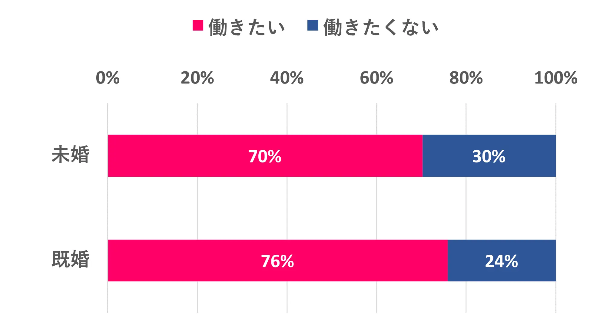 女性の未婚・既婚別「働きたい / 働きたくない」割合