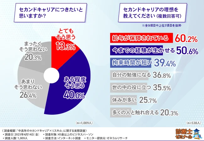 そこで今回、診断士ゼミナール(https://www.rebo-success.co.jp/index.html)を運営する株式会社レボは、45歳以上のビジネスパーソンを対象に、「中高年のセカンドキャリア×リスキル」に関する調査を実施しました。