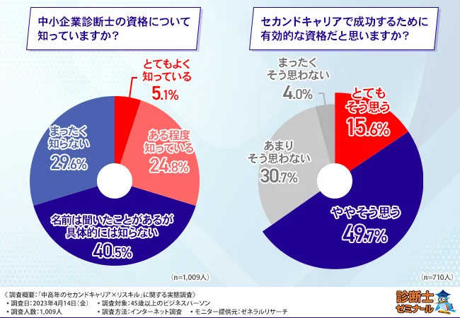 先程の調査で、中小企業診断士の資格はセカンドキャリアに有効的だと考える方が多いことがわかりました。