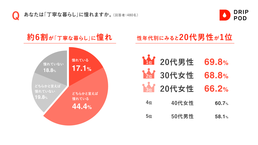 1.20~30代の若い世代を中心に「丁寧な暮らし」への憧れ、約6割に