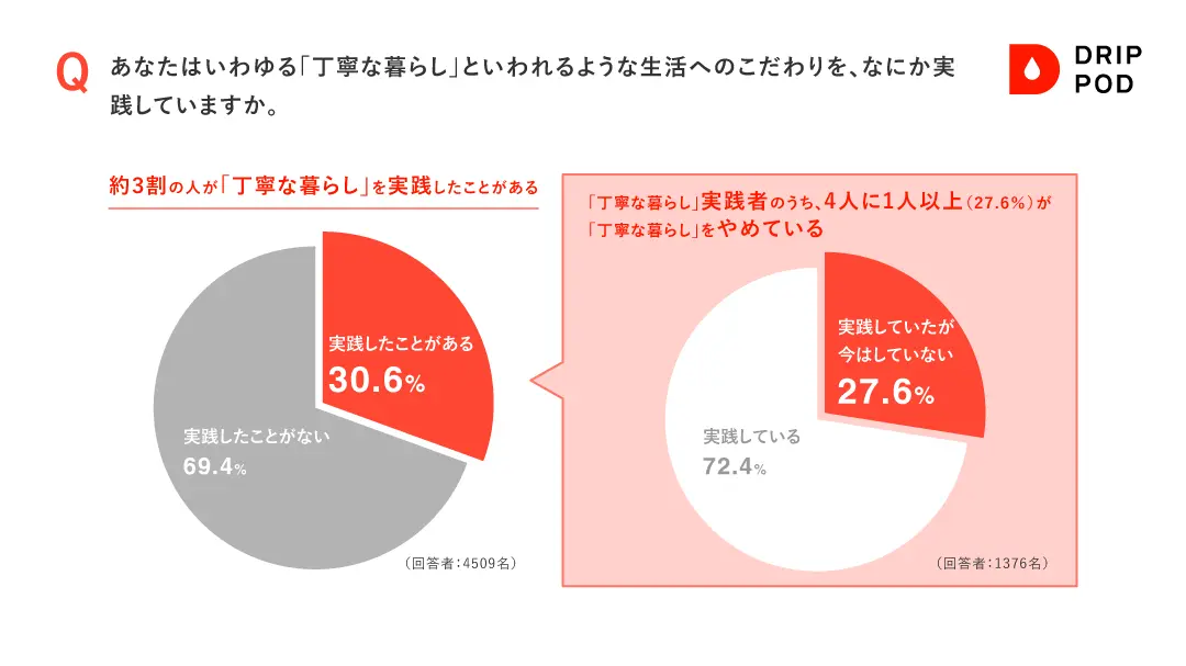 うち、4人に1人以上(27.6%)が「丁寧な暮らし」をやめていることがわかりました。