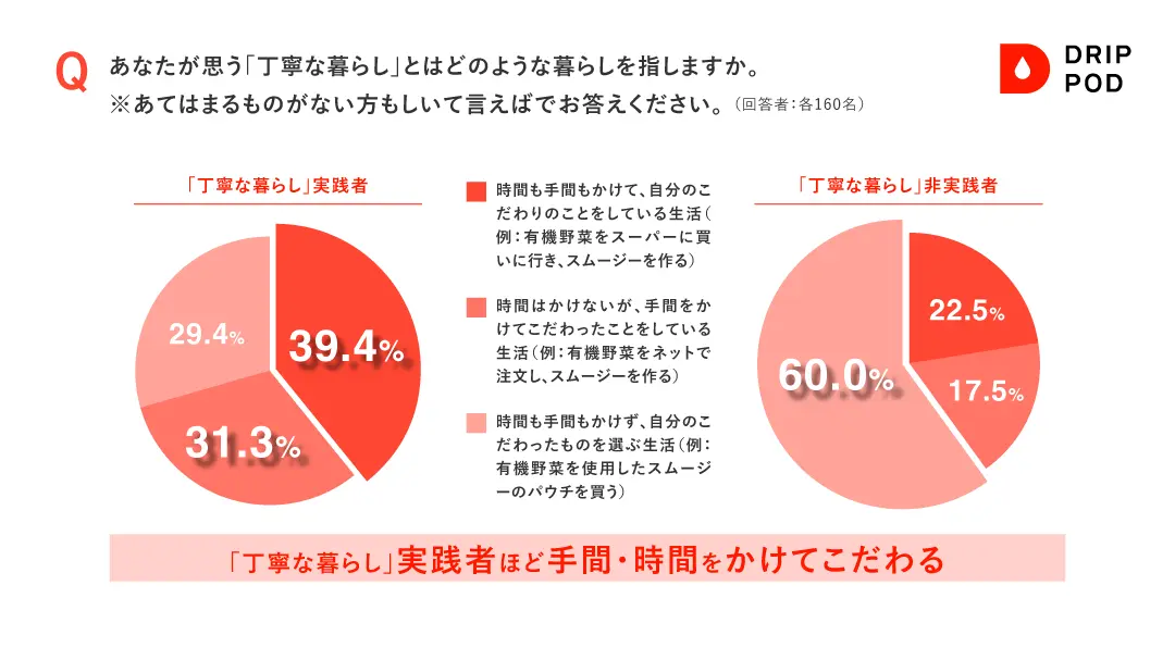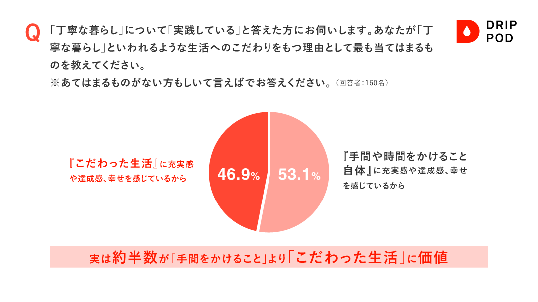 一方で、実は約半数が「手間をかけること」より「こだわった生活」そのものに価値を感じている。